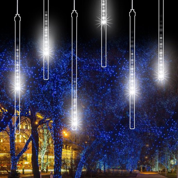 240 Leds Meteor Shower Rain Lights Drop Icicle Snow Falling Raindrop String Lights With 19 69in 50cm 8 Tube Waterproof Cascading Lights For Wedding Party Home Garden Cool White Us Plug Walmart Com Walmart Com