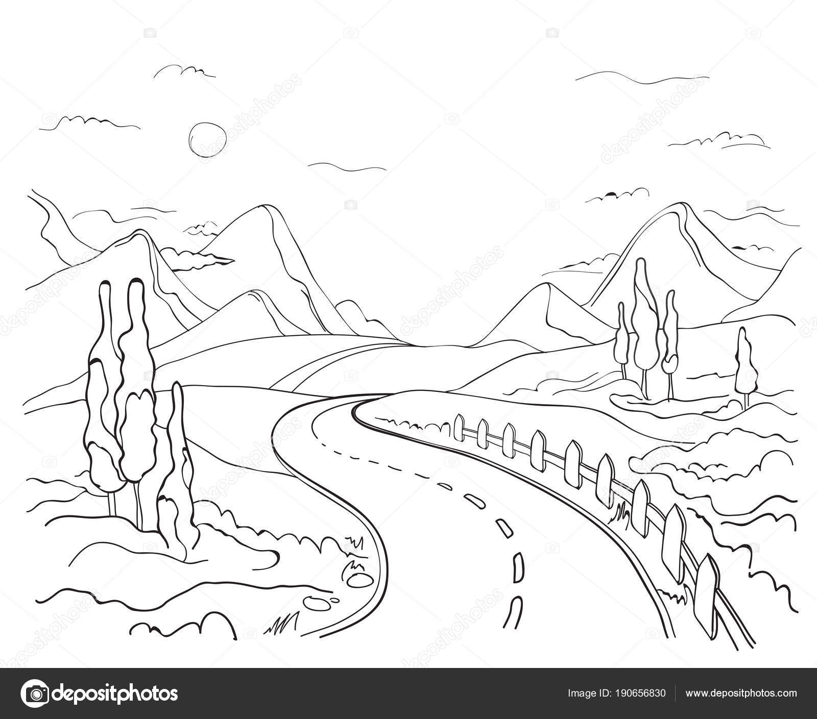 Premium Vector Sketch Of A Landscape With A Road And Mountains Hand Drawn Illustration